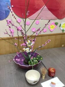 - ひな祭りお茶会久しぶりにお茶会を開催しました。 利用者様がお花を活けて、お茶を点ててくださいました。 ほろ苦いお抹茶が、お菓… 続きを読む: ひな祭りお茶会