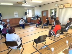 特養ではご入居者の皆さんと記念撮影を行っています。「きれいかね~」「立派ね~」「うちにも娘がおるけんあるとよ」とお話をされていました。