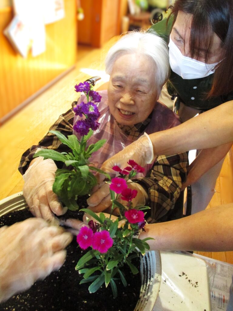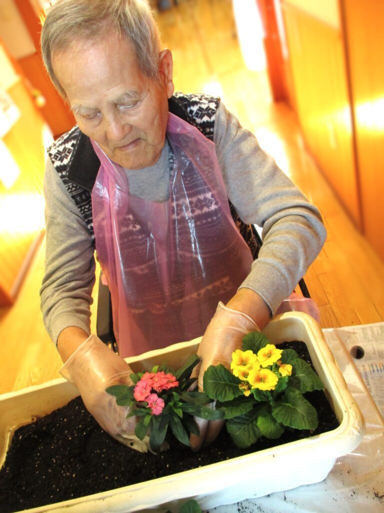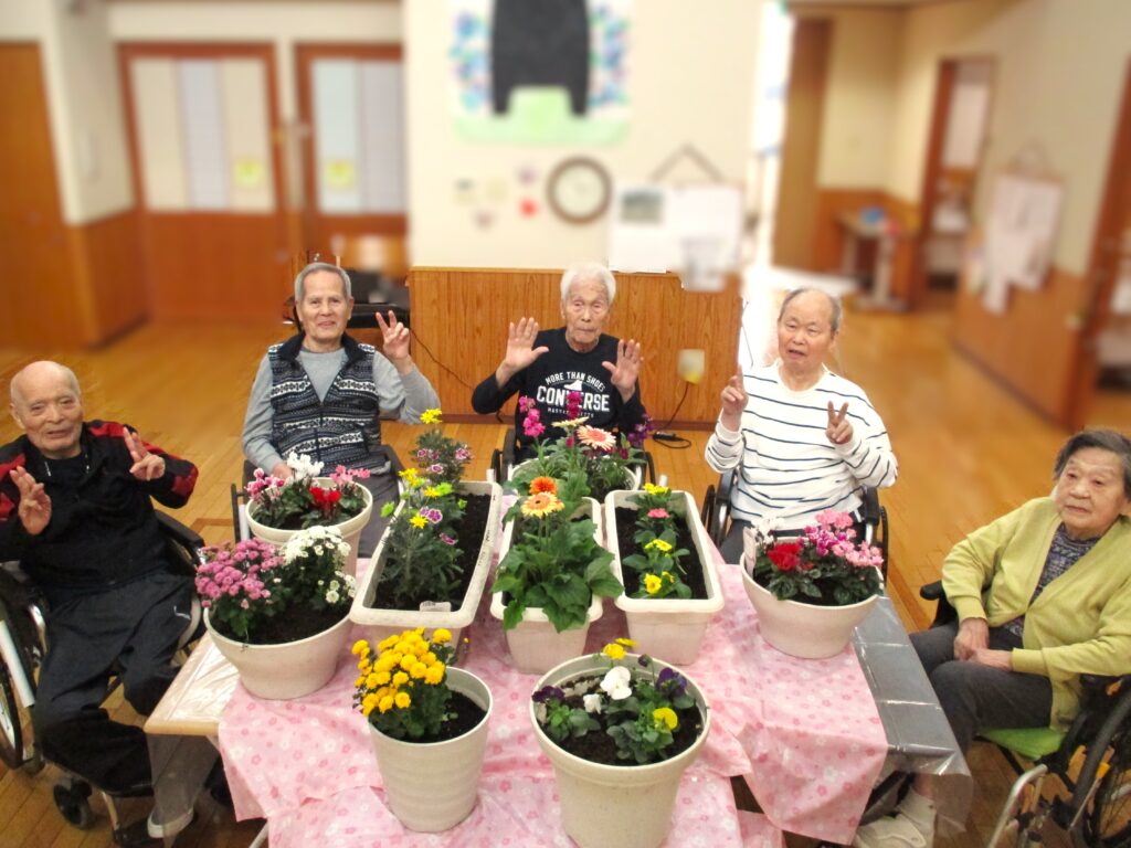 「花植え🌺」 2025年10月26日 最終更新日時 : 2025年10月27日 aikou ひかり館では秋の花植えを行いました🌼✨ 皆様真剣に植えておられます✨ 植えた花と一緒に記念撮影を行いました📸✨