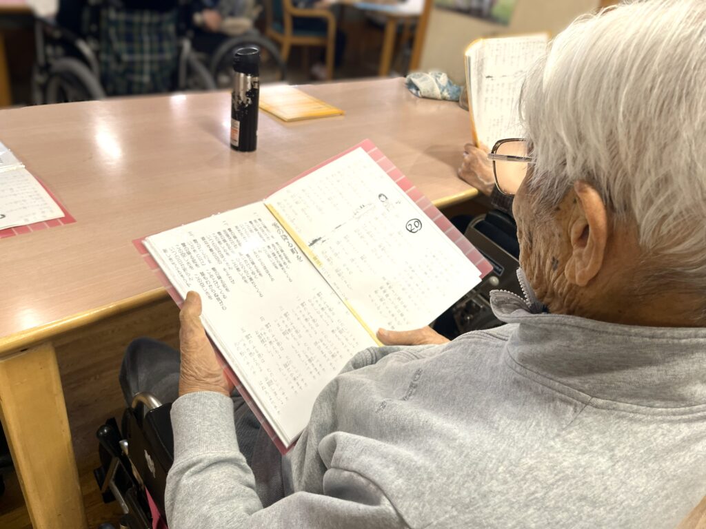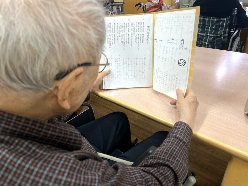 歌詞を見ながら歌を歌っています🤗