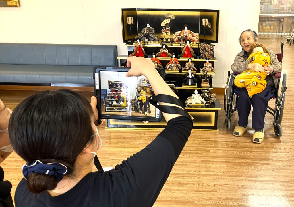 ということで、特養の皆さんがお雛様と共にお写真を撮っているところにお邪魔しました🤗