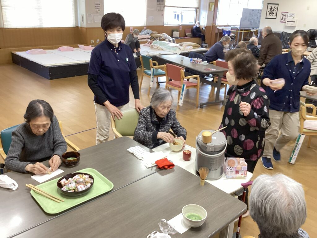 ひな祭りお茶会 2026年2月19日 最終更新日時 : 2026年2月19日 aikou 久しぶりにお茶会を開催しました。 利用者様がお花を活けて、お茶を点ててくださいました。 ほろ苦いお抹茶が、お菓子とよく合います😊 ゆっくりとお茶をいただき、お花を眺め、贅沢な時間を過ごせました✨